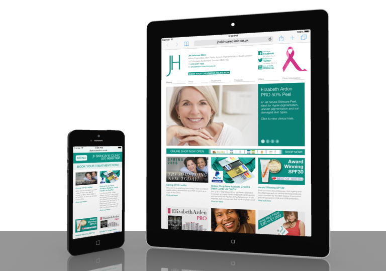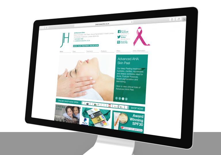 Referred by a mutual client, JH Skincare Clinic appointed Two by Two to update their brand, salon interiors and website.