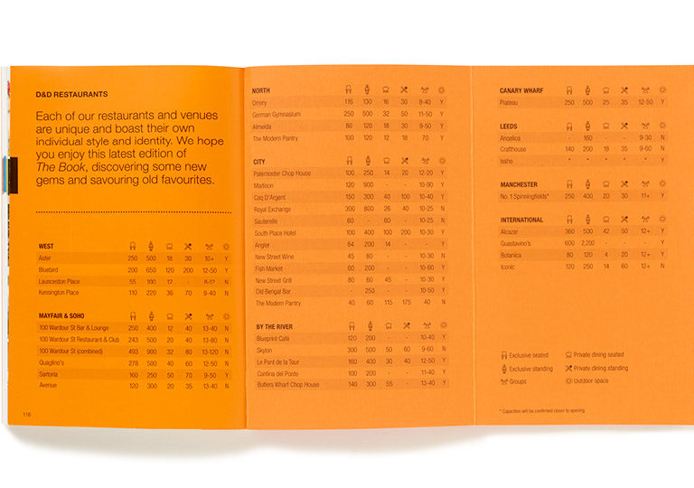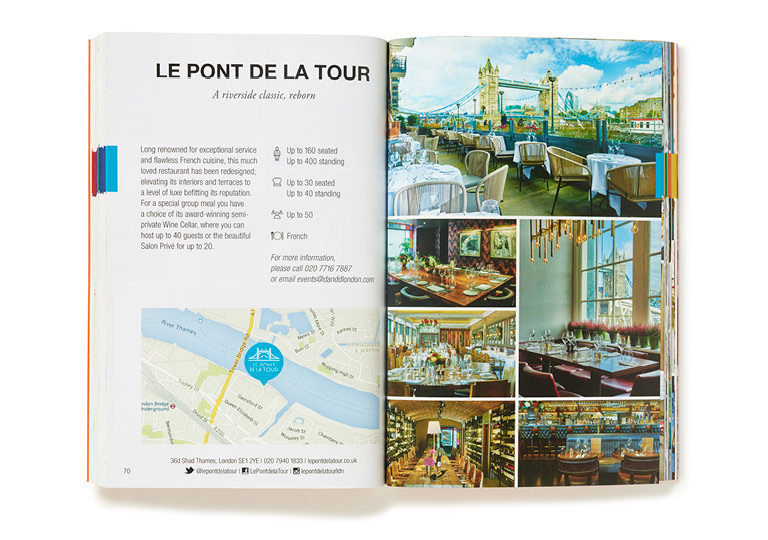 Created for the Events team at D&D, this pocket-sized directory of their 30+ London, UK and international restaurants contains invaluable information for companies and organisations to find the perfect venue for their event.